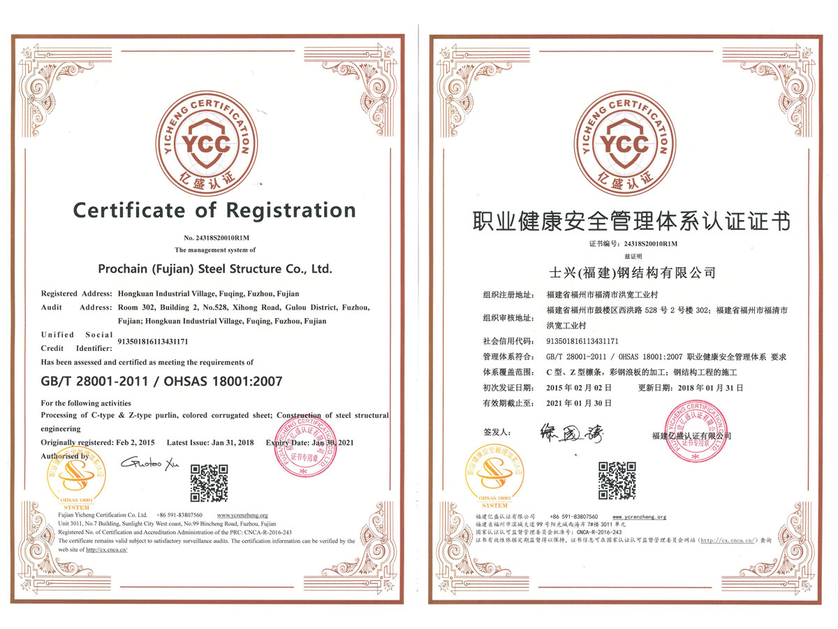 职业健康管理体系认证证书